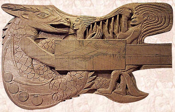DRAGON LADY  is ExQuisitely Carved from RED TAMARIND in Fine Detail!!!  InStead of Dragon ATTACKING LADY--She is Giving Him HARP LESSONS, PLAYING on a HARP with 2 CARVED HEADS Looking Back at Them!!!   You Can See their Hands Playing the Harp Strings while She Stands on His Tail!!!  ANY DREAM I CARVE & INLAY FOR YOU!!!   PEACE &&& LOVE!!!