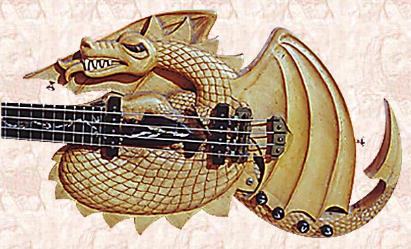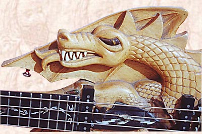 I Carved Lightening Dragon Bass Guitar  from Curly Maple Mortised Neck into Maple Body!  The Dragon is Flying Catching an Arrow!!!  The Teethes are CowBone & The EYE is Bocote & Tiger's Eye--can you SEE into the EYE of the DRAGON???...into the EYE of the MAKER???